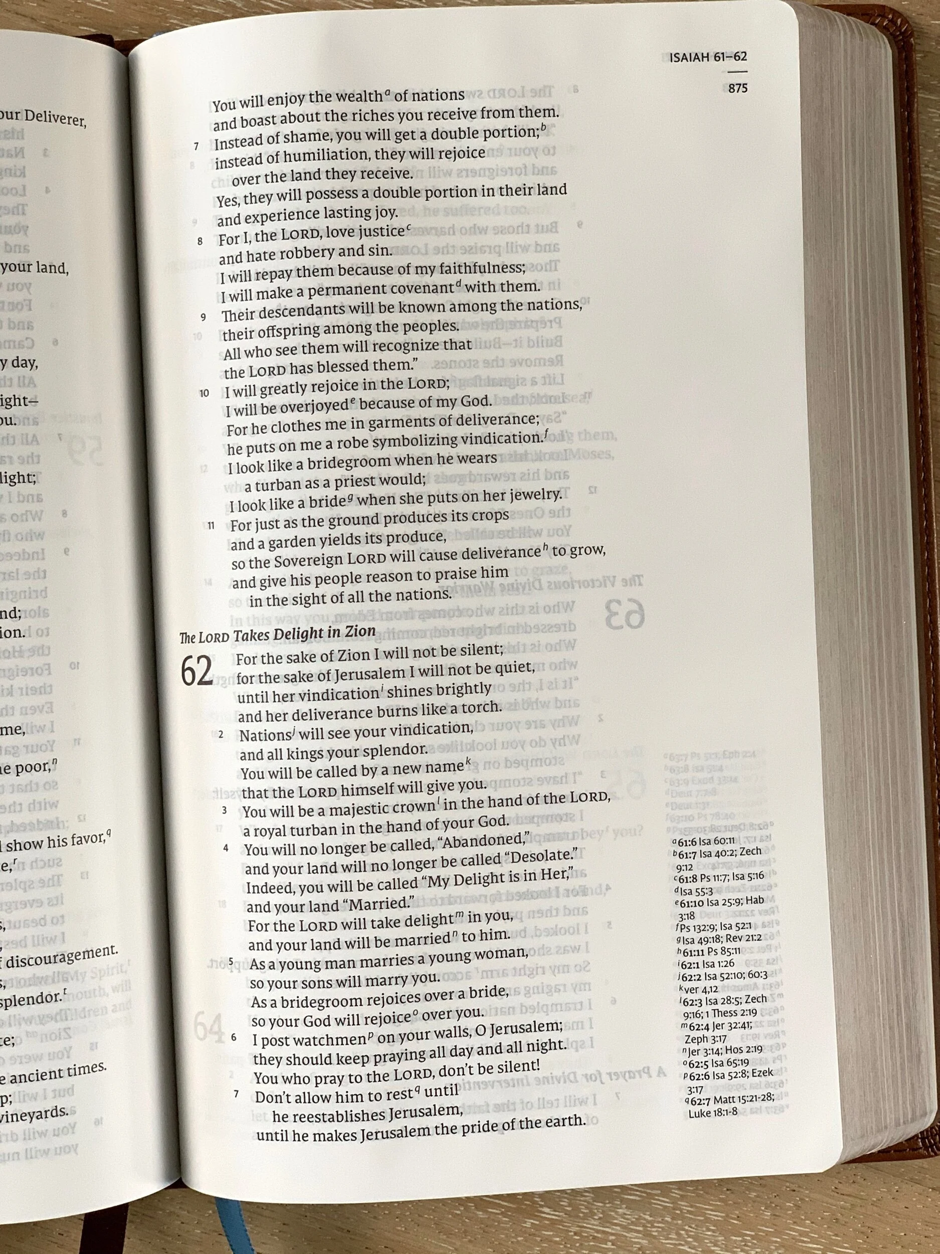 The cross-references in the NET Single-Column Reference Edition are found on the outside of each page, justified to the bottom of the page. This feels like a “there when you need them, out of the way when you don’t” situation. The Bible also includes a concordance and a set of maps.